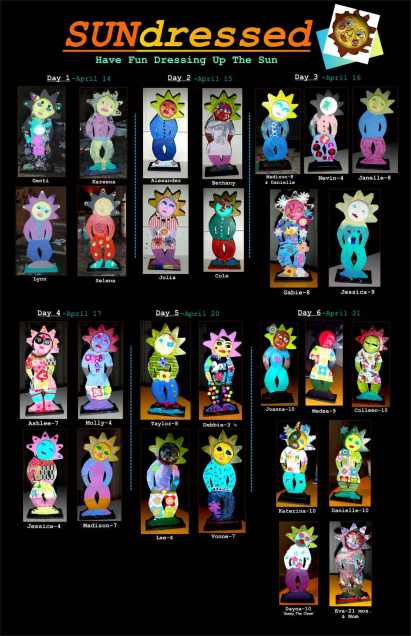 The sun personified..i mean literally! This is a project I tried out with workshops I did at the Creative Kids Museum (Telus Science Centre, Calgary) and the kids had a blast dressing up Sunny.