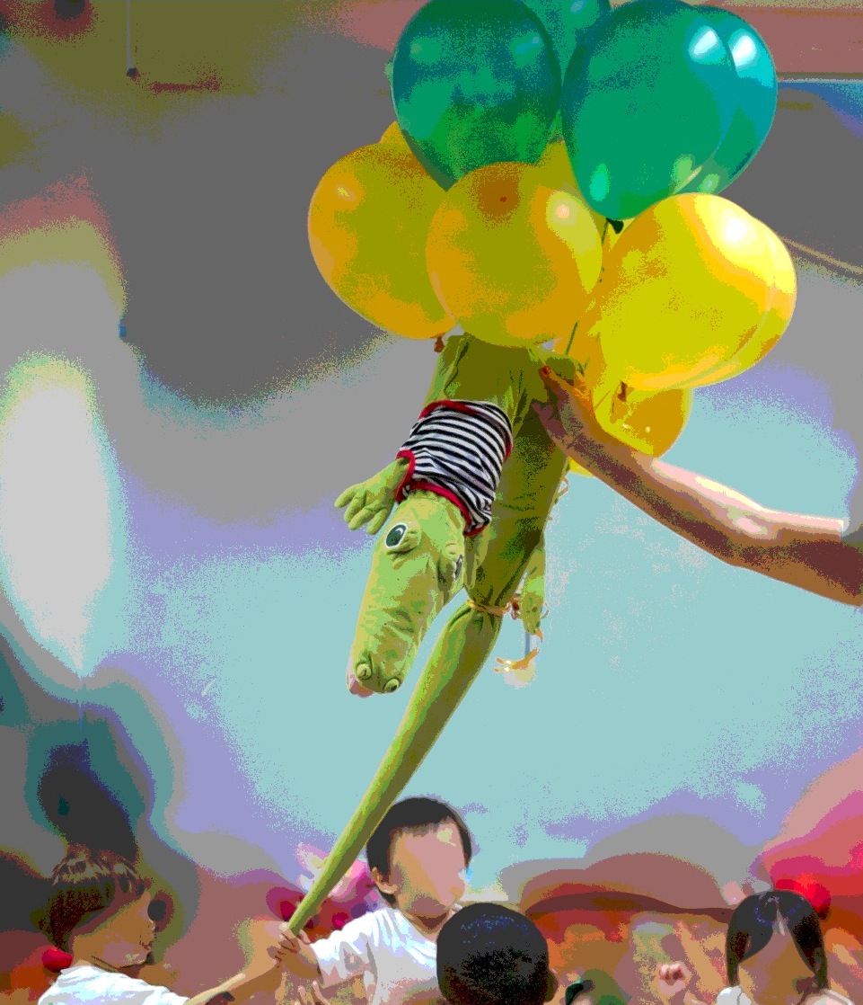 I went on the internet and found this alligator. So i changed a few things to make it resemble Allie. Changed tongue from red to pink and put a striped shirt on him. I changed the colour of the balloons as well. Anway, this is how I translated Allie into a party theme. Follow tomorrow’s post to see how Allie appears in the birthday cake, cupcakes and tokens.