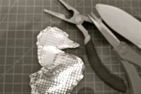 Step 3- Fold the foil edge over all the way around so that no sharp edges are exposed. I used pliers and a bone folder to help me with this step.