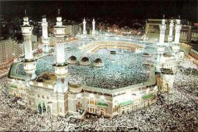 The Holy Mosque in Mecca is the most important site in the Muslim world. The mosque developed around the Holy Ka’aba, a cube, which was erected by Prophet Ibrahim (as) and his son Prophet Ismail (as) on an earlier sanctuary established by Prophet Adam (as). At one corner of the Ka’aba lies the Black Stone.