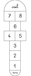 To play hopscotch, a course is first laid out on the ground. Depending on the available surface, the course is either scratched out in dirt, or drawn with chalk on pavement. Designs vary, but the course is usually composed of a series of linear squares interspersed with blocks of two lateral squares. Traditionally the course ends with a “safe” or “home” base in which the player may turn before completing the reverse trip. The home base may be a square, a rectangle, or a semicircle. The squares are then numbered in the sequence in which they are to be hopped.