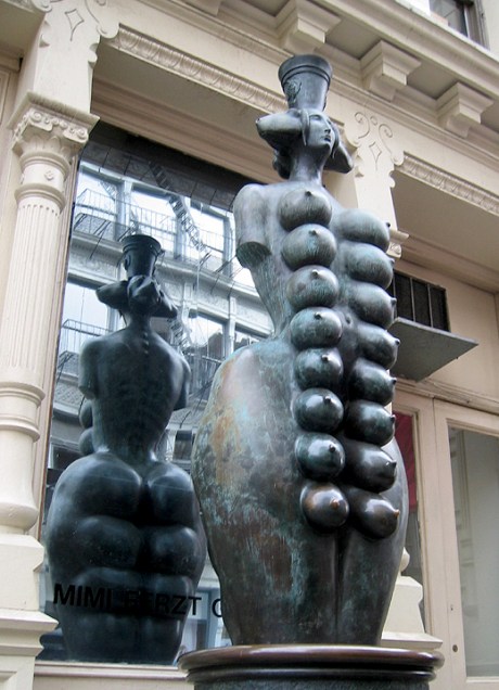 Imagine her lactating, how many litters of milk do you think can she produce daily?Mihail Chemiakin’s bronze iconic landmark, “Cybele,” goddess of fertility and abundance, stands on a Prince Street sidewalk at 15 feet tall with eight pairs of breasts, four pairs of buttocks, three animal heads (two rams and a lioness), and a human face. There is a mirrored window behind, allowing you to see everything at once. Something for everyone, she is the Great Female Goddess of the city’s feminists and a generous sexual icon for the male worshipers of Venus…(Info & Image Source)