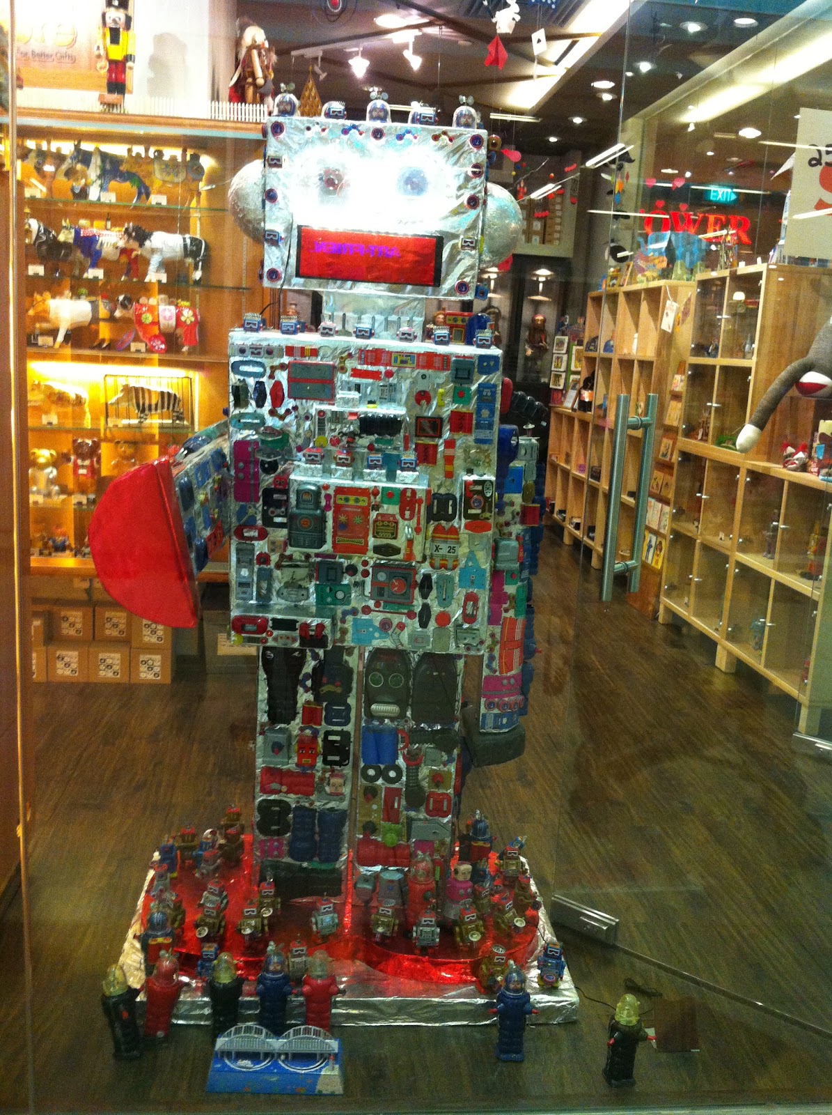 Welcome to a new week on Daily Dose of Art! Last weekend, as I was enjoying some leisure time with my family, I came face to face once again with a robot on display at The Better Gift Store in Ngee Ann City on Orchard Road here in Singapore. I asked myself- how much do I really know about robots.. my honest answer was NOT MUCH!