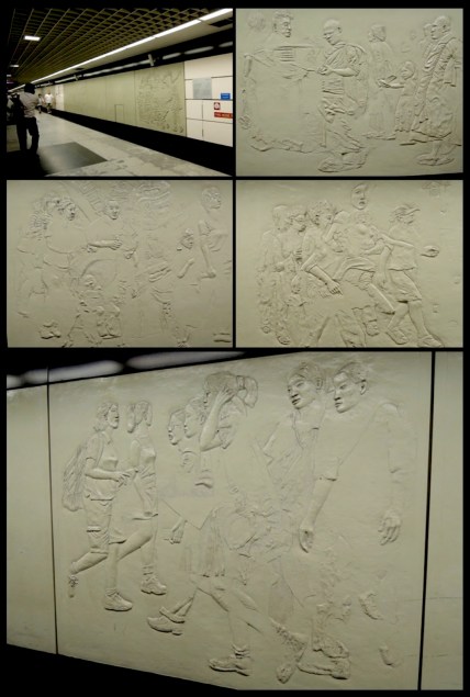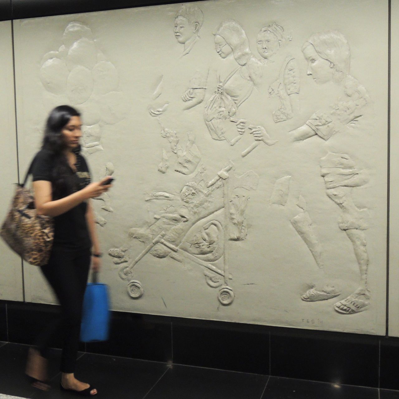 One of the most thought provoking artworks on the North East Line, these rich and varied wall reliefs of people in motion reflect the thoughts and inner-most feelings of commuters. These images seem to emerge from the wall and disappear into it, inviting commuters to pause and contemplate on their meaning. The work was originally fashioned in clay by the artist before being transferred onto concrete wall panels.Info SourceLearn more about Singapore’s Art in Transit Program
