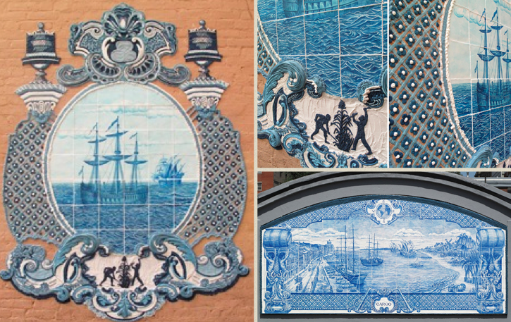 The mural was a trompe l’oeil resembling traditional azulejo tile murals. Azulejo is a form of Portuguese or Spanish painted, tin-glazed, ceramic tile work that has been produced without interruption for five centuries. Unlike traditional tile work, Shelley Miller’s installation was made to fade in the sun and slowly disintegrate. (Info from Open Space)