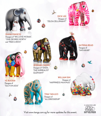 I have been keeping these beautiful images from a Tang’s shopping bag. It was no ordinary bag, it was a commemorative shopping bag for the period that The Elephant Parade made their stop in Singapore.