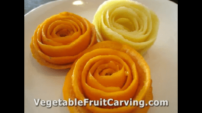 It’s Craft Day on Daily Dose of Art! And to continue with our FRUITful Designs feature, I bring you a series of instructional videos on “How to Make Fruit Roses”. Hey, why not ‘take time to stop and carve the roses’??? hahahaha