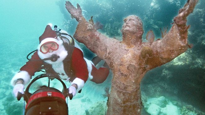Thousands of children and adults visited the zoo in the city of Guadalajara, capital of the western Mexican state of Jalisco to see the “underwater” Santa Claus, who dives in one of the fish tanks at the aquarium.