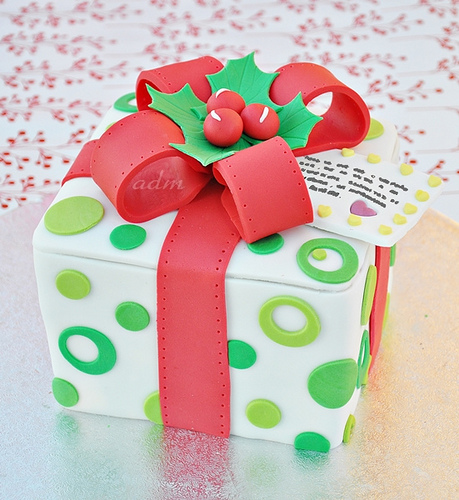 I hope you have enjoyed a whole week’s feature on Creative Green Christmas Wrapping. Today, I bring you a different kind of holiday wrapping – the kind that you can eat as you open your present..Christmas gift cakes!