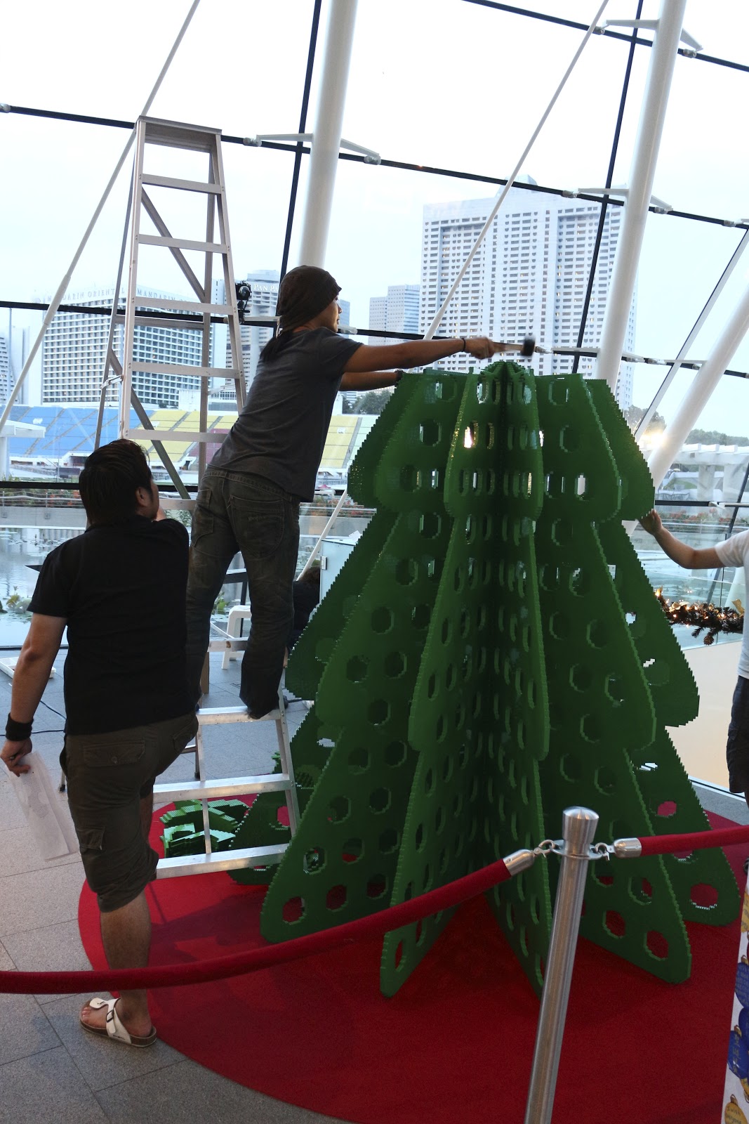 Spheres or balls..whatever you call them..but there were lots of them at the lobby of the ArtScience Museum. When we visited the museum in early December, there was a whole crew still working on the Lego Christmas tree. Visitors were invited to help build the lego spheres that would be used as ornaments. We never got to see the completed tree. However, thanks to Facebook, i found this photo of the completed tree with the lego spheres…