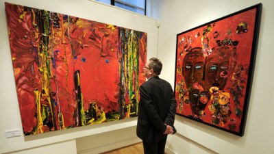 at a collection of his artwork in London