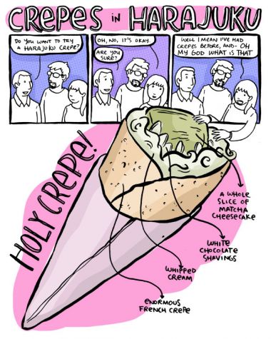 In early August, my family and I were in Tokyo for a work-holiday trip. Work for me since I was having an exhibition at the Design Festa Gallery in Harajuku. However, during gallery duty breaks, I managed to fit in some touristy activities in the neighborhood such as enjoying the famous Harajuku rolled crepes!