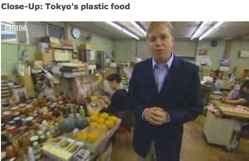 2. “Takizo Iwasaki is credited with creating the first food sample early last century. Initially inspired by the shapes formed by candle wax dripping on a tatami mat, he subsequently molded a wax rice omelet in Gifu Prefecture in 1917. In 1932, he founded the company today known as Iwasaki Co. – the present phony food Godzilla, commanding over fifty percent of the market.” Info from Big Empire