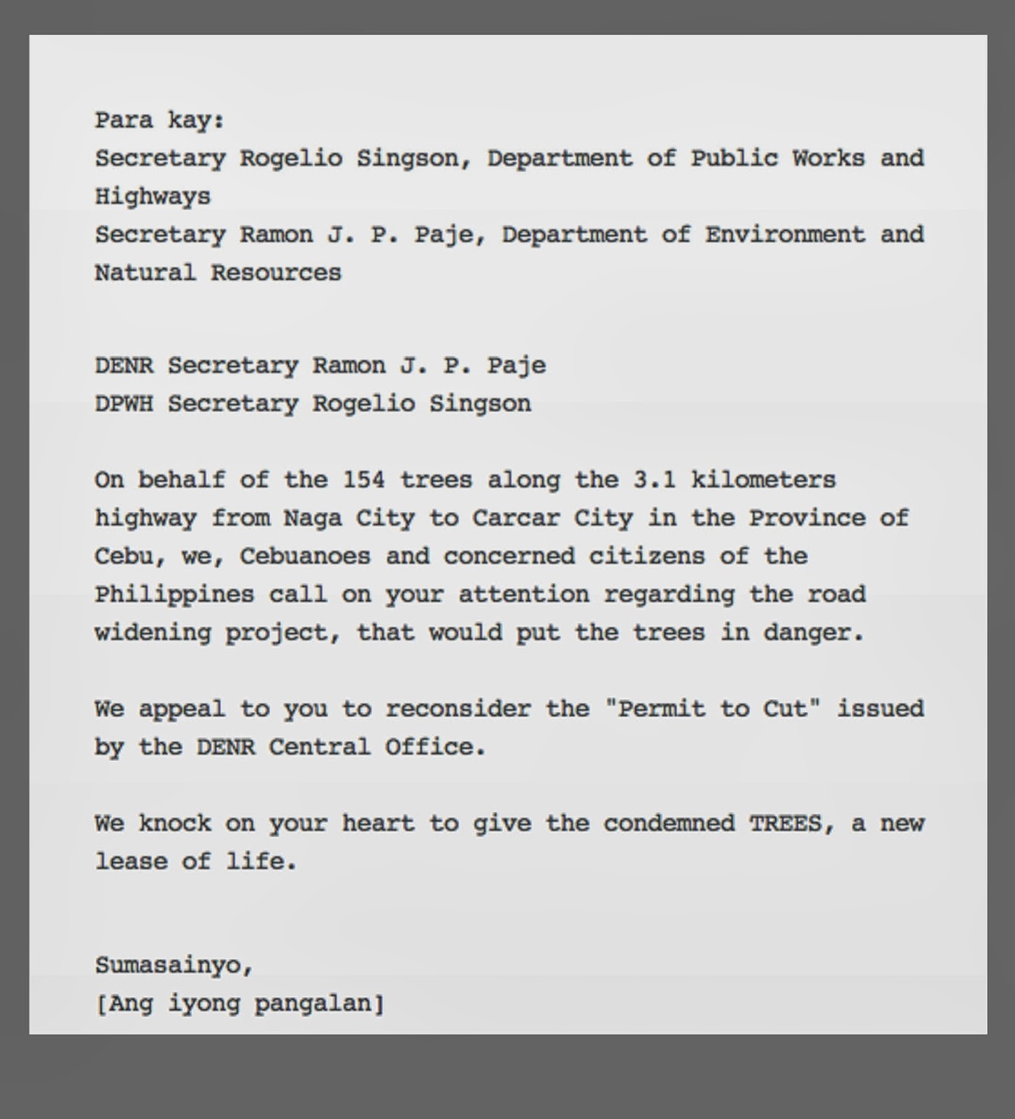 Above is a screenshot of the signature campaign as it is presented on Change.org. If you are proud to be Cebuano, please help protect our natural heritage, ‘speak for these voiceless trees’. CLICK HERE to join the signature campaign.