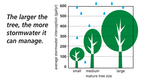 - Trees can reduce annual storm water runoff by 2% — 7%.
