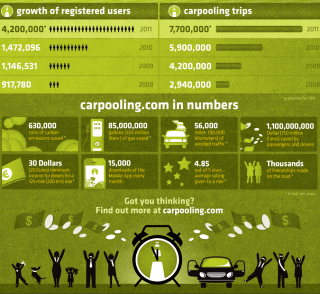 Here are a few posters and signages that I have gathered that promote the smart and sustainable mobility solution of RIDE-SHARING: These first four charts are from carpooling.com. What a brilliant presentation to convince the world to start carpooling.