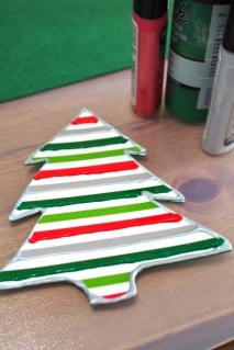 3. Use dimensional paint to add some interesting patterns on your tree. I used red, green and silver. (use acrylic kind so it doesn’t have a sticky feel)