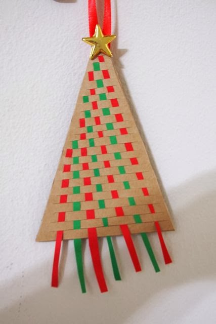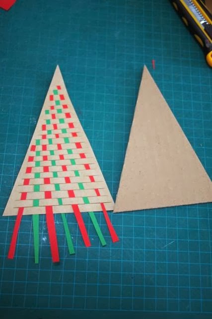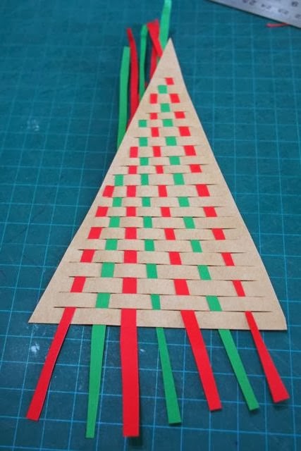 4. Weave in the paper strips alternating between red and green.(See pictures below)