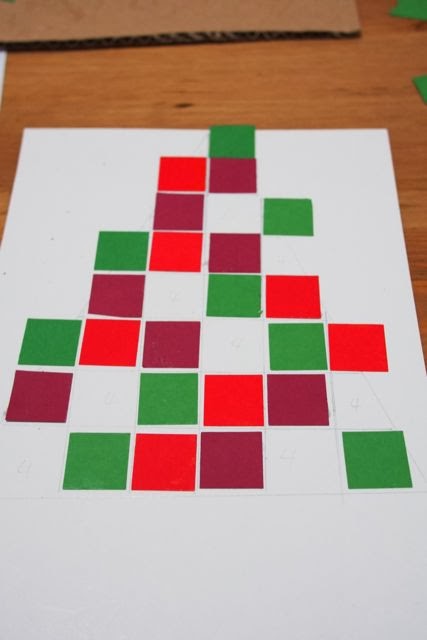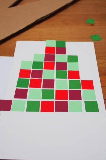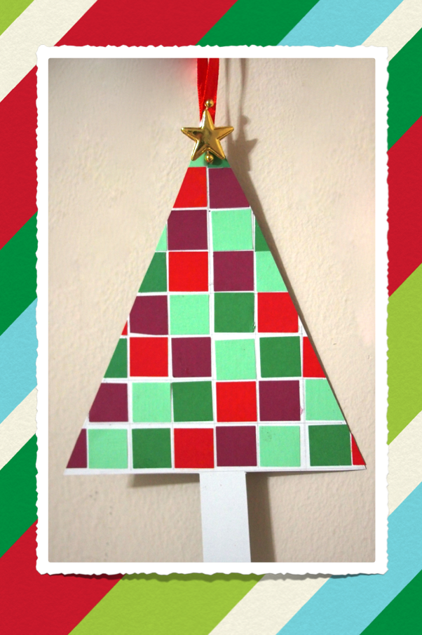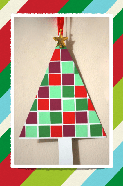 Welcome to Day 4 of “Make Your Own Christmas Tree”! Today we will make a paper mosaic using a very basic mosaic tile pattern.
