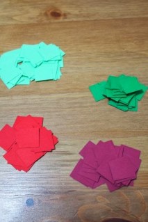 3. Using a square puncher, prepare the 4 different colours of paper mosaic tiles.