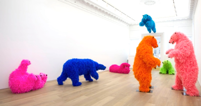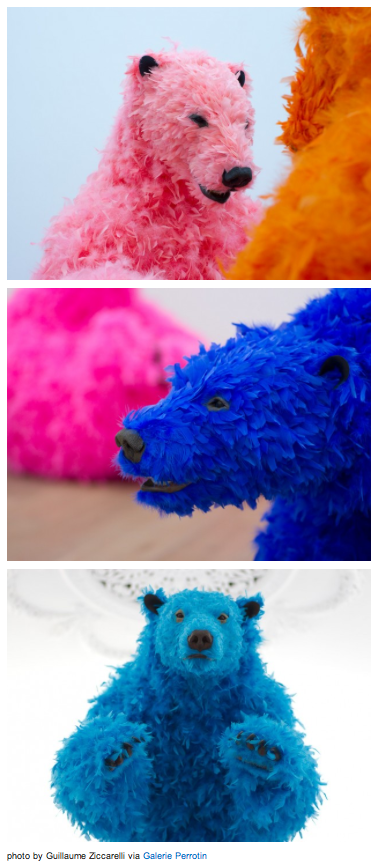 Pivi creates artworks that are disorienting and simultaneously poetic. Though formally different, her work pushes the limit of what can be done in this world as an artwork. Her first comprehensive solo exhibition in the United States will take over both floors of the gallery and feature exclusive new works. On the ground floor, Pivi will present an installation of eight fantastic creatures. The polar bears will return in Paola’s art! An unexpected performing sculpture, “Money machine (true blue, baby I love you)” will also be on display on the lower level, evoking the topography of the New York building which was previously a bank and hosted a vault.” Info from GALERIE PERROTIN NEW YORK