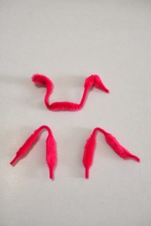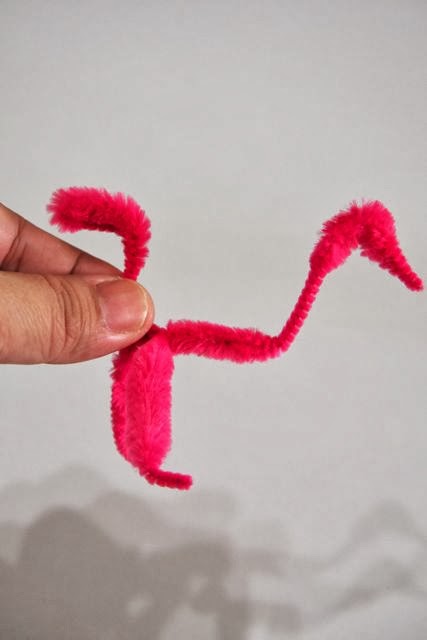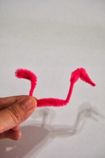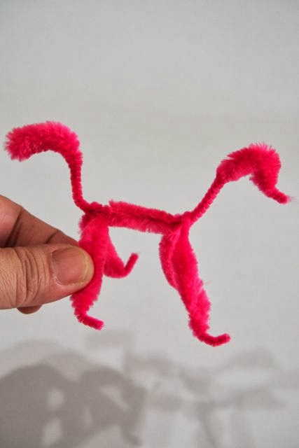 2. Cut the 2nd pink pipe cleaner into half to make the legs of the doggie (see photo below).