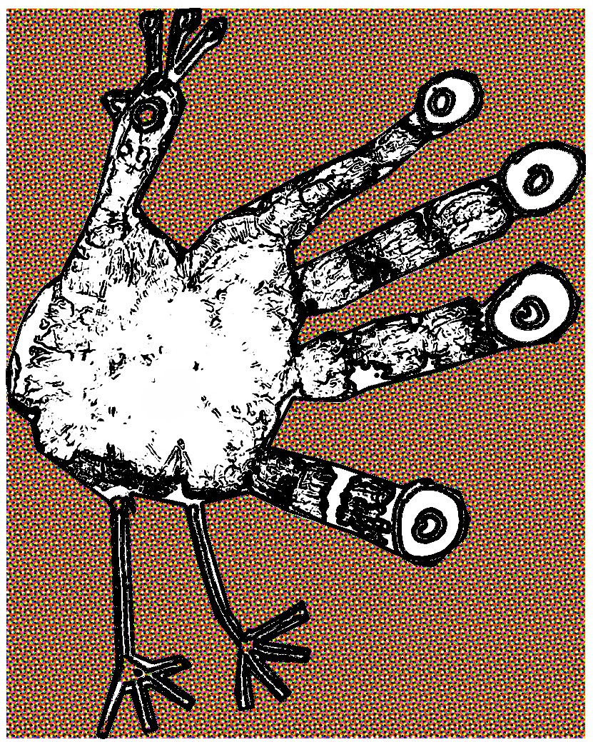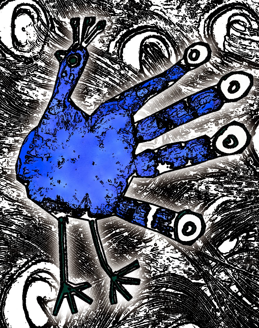 Take a photo of your handprinted peacocks and play around with digital image using PIXELMATOR or other design software.Below are a couple of effects you can try out: