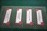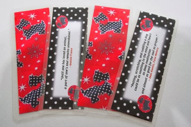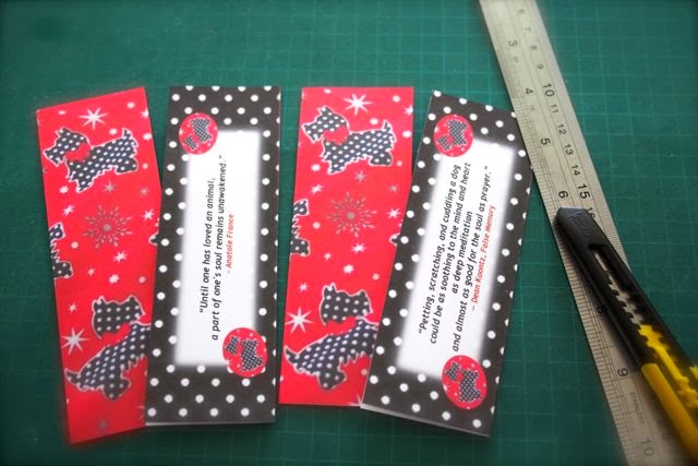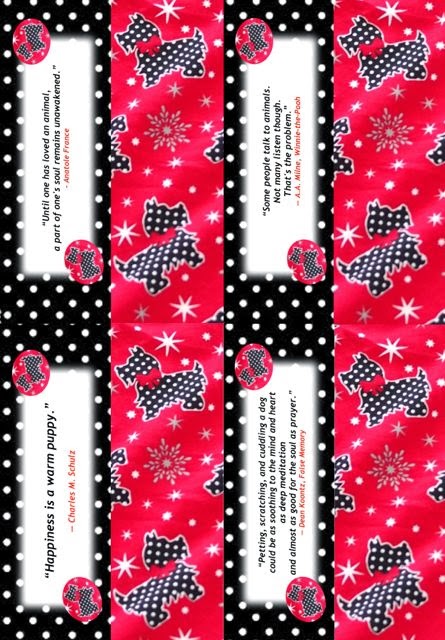 Step 1- Scan sleep shirt and design bookmarks with quotes on dogs or animals. I used some polka dots for the back to coordinate with shirt fabric design. Note: You may use actual fabric but for my example I have chosen to scan and print instead.
