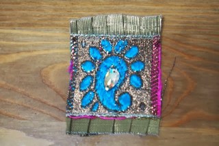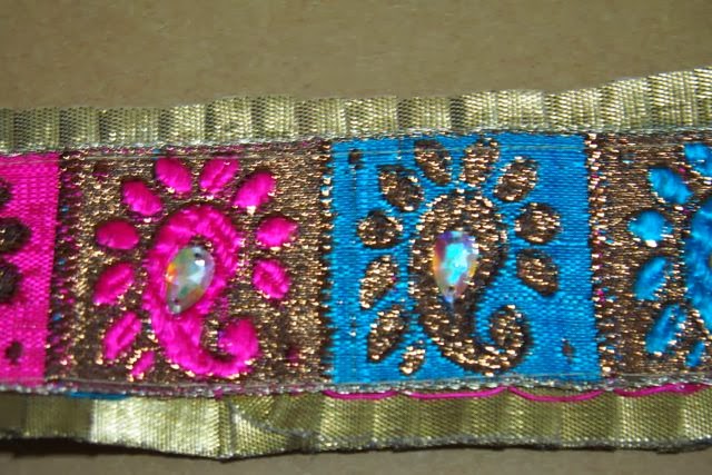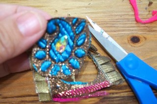 Step 2- Cut out a portion of sari embellishing tape/ribbon.