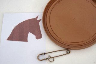 Step 1- Use template to cut a horse head shape out of the plastic lid.