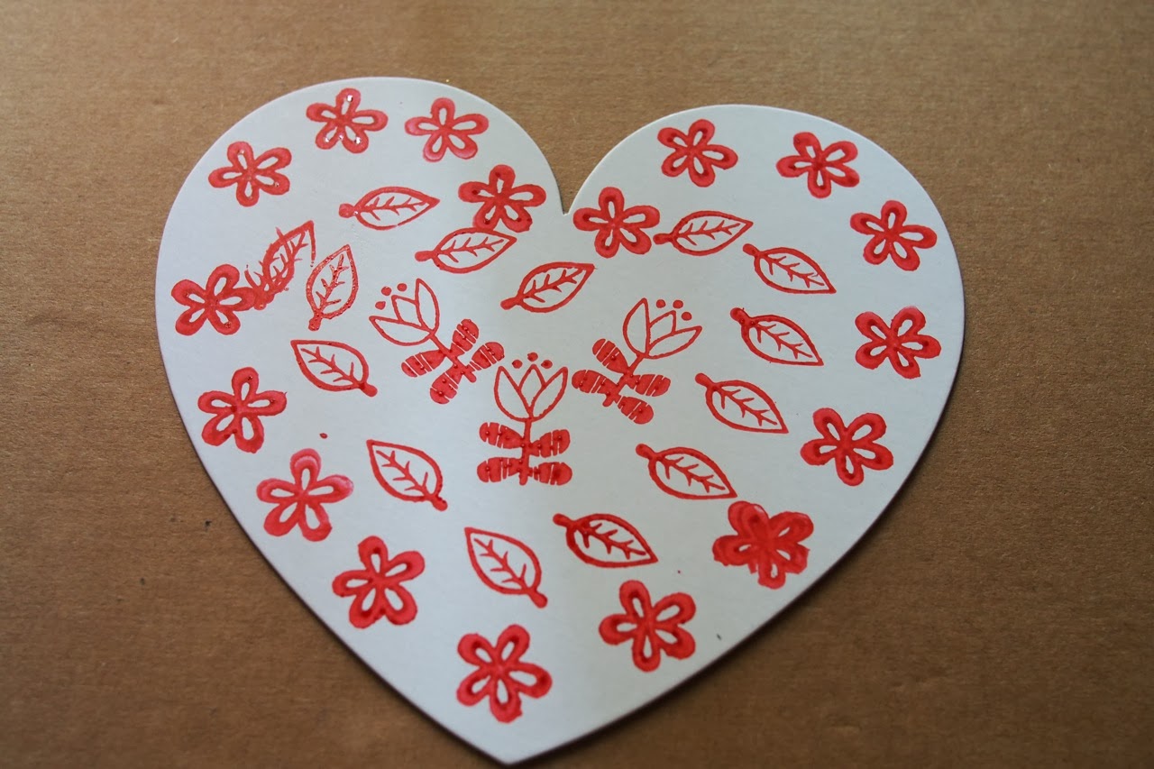 Step 3- Stamp center of heart 1 to 3 bigger stamp designs.