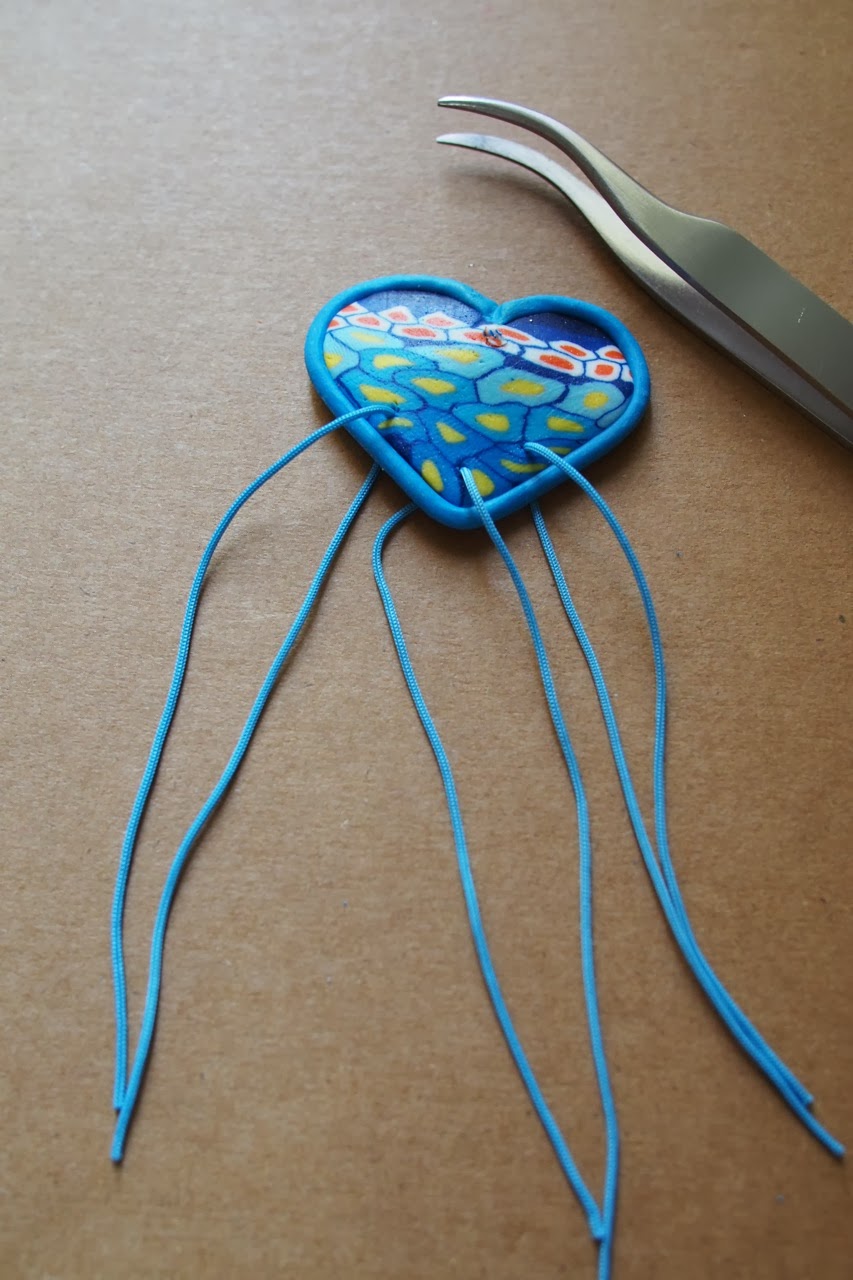 Step 4: Attach large jump ring to heart piece and insert long string to continue your beading adventure.