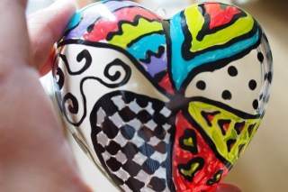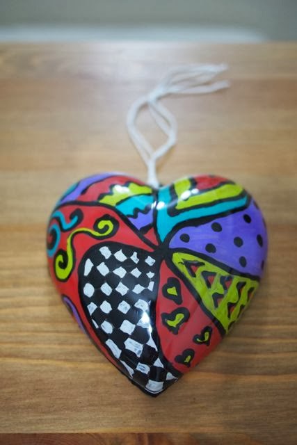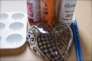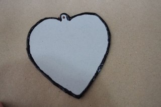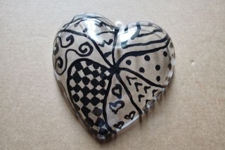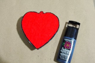 Step 1: Paint design details on reverse side of heart using black dimensional paint. Allow to dry completely.