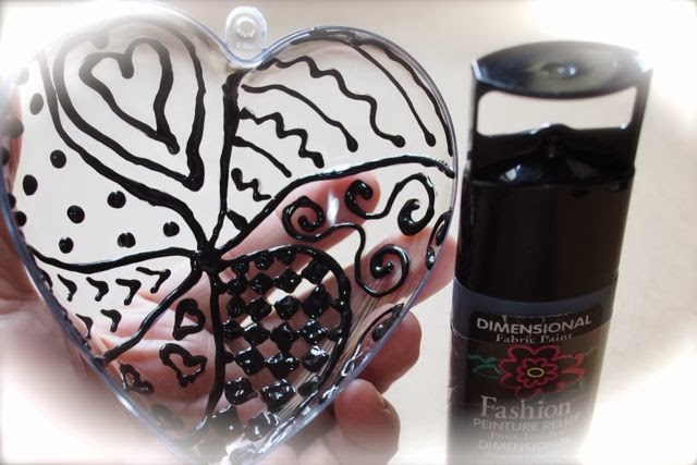 a- (inside face)- draw black outline around heart using dimensional paint. Allow to dry completely before moving on to step b.