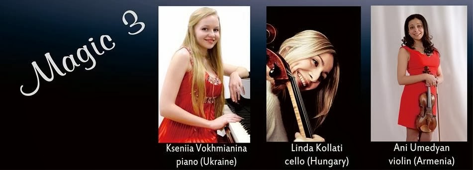 We start off with the MAGIC 3 – three lovely European musicians with remarkable talents: pianist KSENIIA VOKHMIANINA (Ukraine), cellist LINDA KOLLATI (Hungary) and violinist ANI UMEDYAN (Armenia).