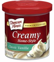 | I got Duncan Hines (DH) pre-made frosting from Tanglin Market Place, Tanglin Mall. I put the DH pre-made in a plastic ziplock for easy frosting. |