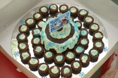 So there you have it — my cheap and charming winter-themed birthday cake solution. And there was enough for everyone! We left the 6″ centre cake for the teachers to enjoy after the party.
