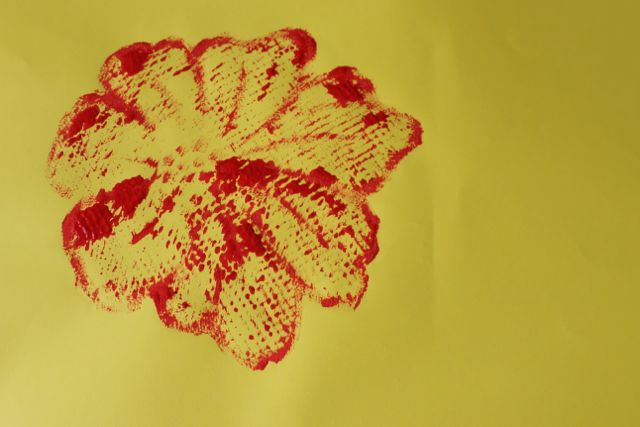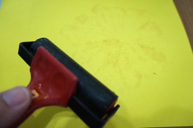 2. Put bright coloured paper on top of template and apply light pressure using roller to make the impression.