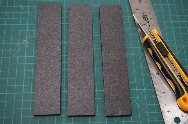 Step 1 – Cut 3 (or more) foam board strips. (about 6″ long, and the width of your metal ruler) Set aside.