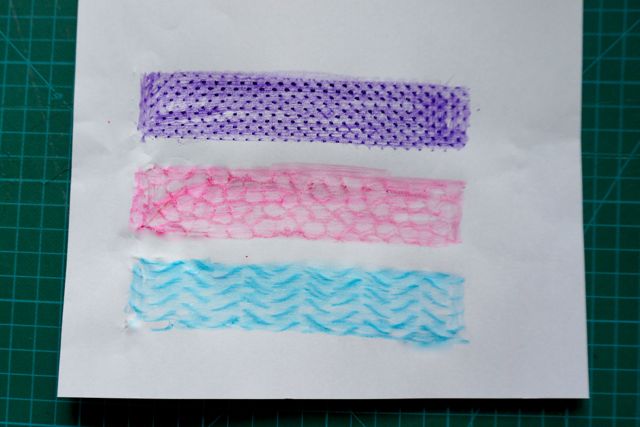 Today we’ll make an exciting variety of pattern strips that will bring unlimited rubbing and printing possibilities. Remember not to be frustrated the first time you try it. You will have to experiment with different textured plastics to see which ones render the effect you want. You will also have to try the finished strips using different media – coloured pencils, crayon or paint.