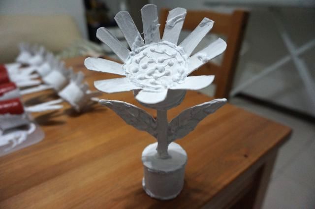 Step 7- Paint a white base coat to get the completed potted sunflower.