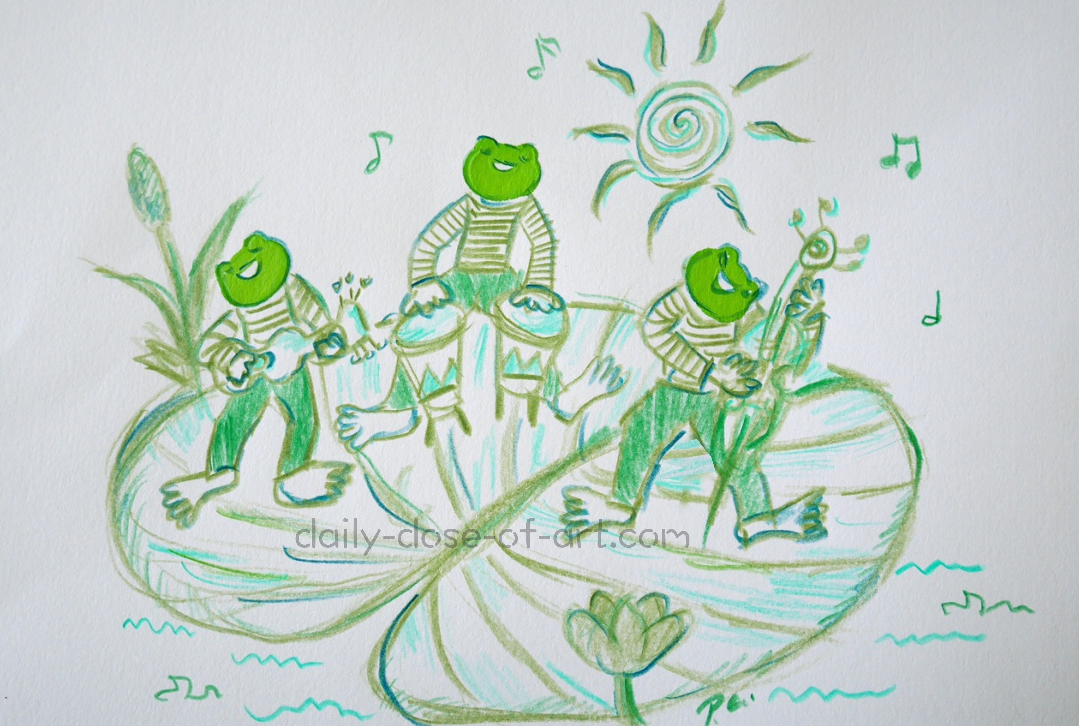 Step 3 – Design a frog band – with the frogs playing guitar, drums and double bass.