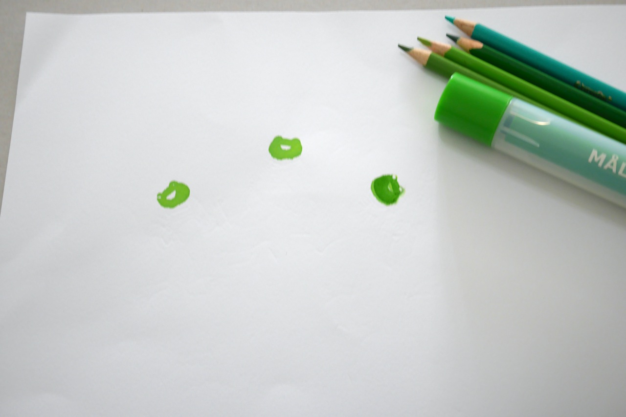 Step 1 – Stamp 3 frog heads on a sheet of drawing paper using the MÅLA stamp pen.