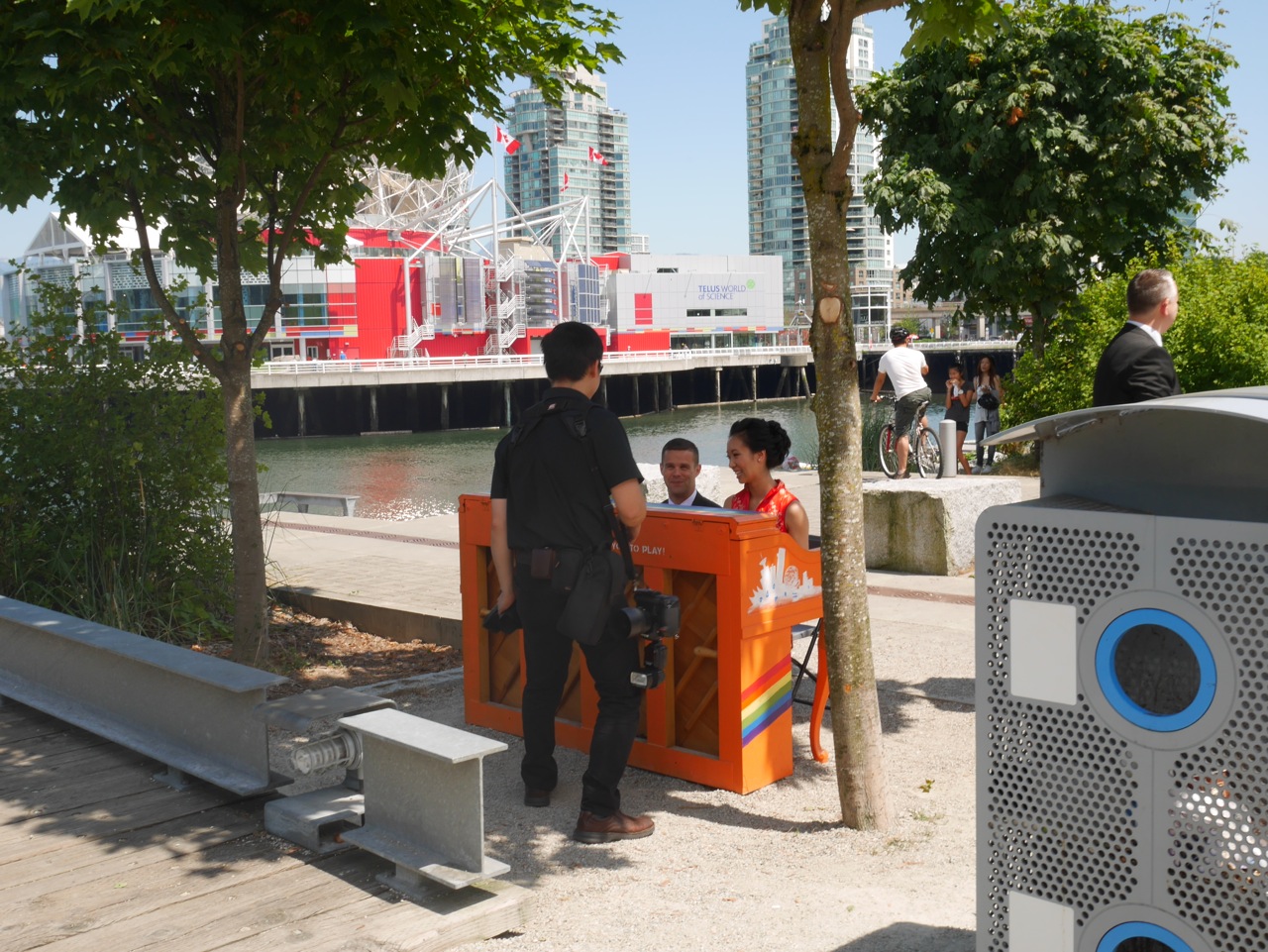 Below are photos that I took on three different days at the same public piano location in the False Creek neighbourhood. From a jazz trio jamming, a wedding entourage doing a photo shoot, to a lone pianist romancing the keys -the photos prove that if there is a piano somebody is bound to play it and people naturally gather to experience the music. What a great way to bring a warm sense of community in the city! Bravo Vancouver!