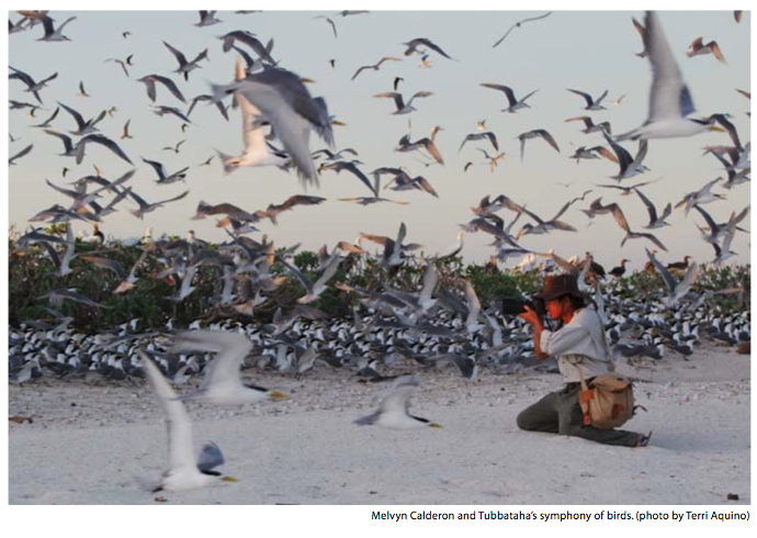 We focus today on Melvyn Calderon’s photos from his visit to the Tubbataha Reef National Park (TRNP) and his collaboration with celebrated painter and print artist Benedicto “BenCab” Cabrera to raise public awareness of the significance of Tubbataha’s bird island sanctuary.