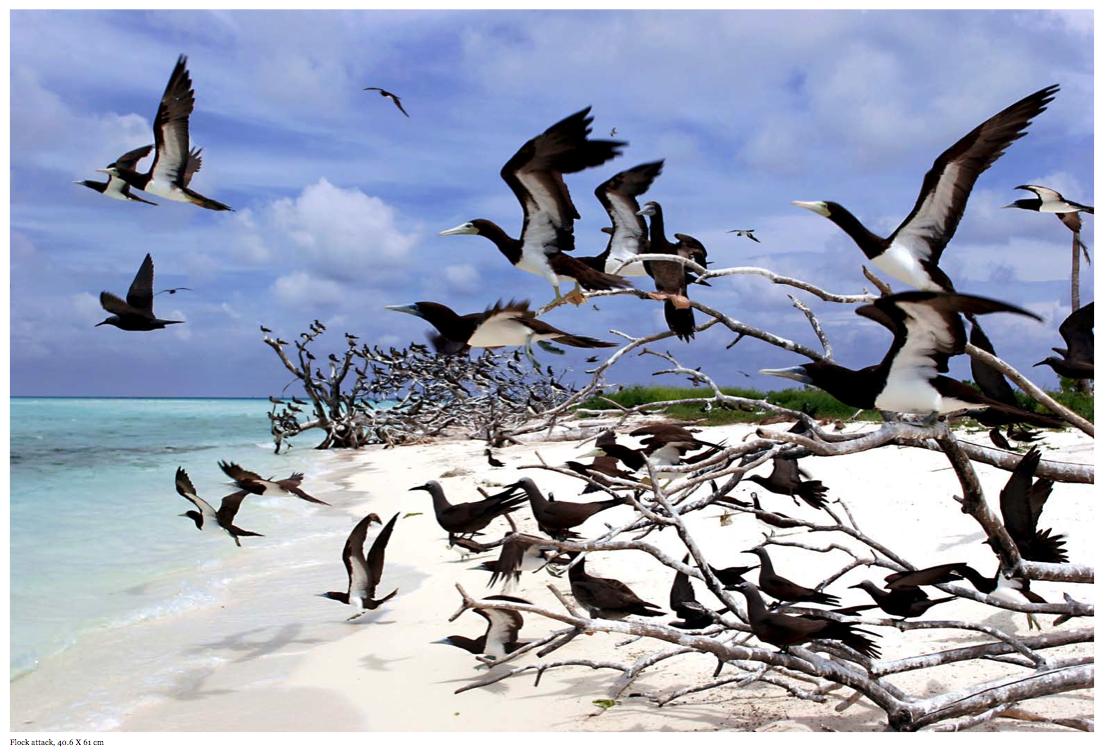 From the USA, we head to the Philippines and get acquainted with noted international photojournalist Melvyn Calderon. It is curious to see how he has moved in a different direction and has collaborated with a creative spirit of another genre . As Philippine art critic Cid Reyes said it, “Just exactly what was a once-incarcerated political activist, former Time and Fortune magazine photo-journalist more at home in strife-torn war zones, doing in a remote islet forbidden to the public and populated by a throng of shrieking, migratory birds?”