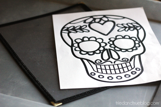 Step 1- Find a skull template to use (lots of free templates available on line), i used one from triedandtrueblog