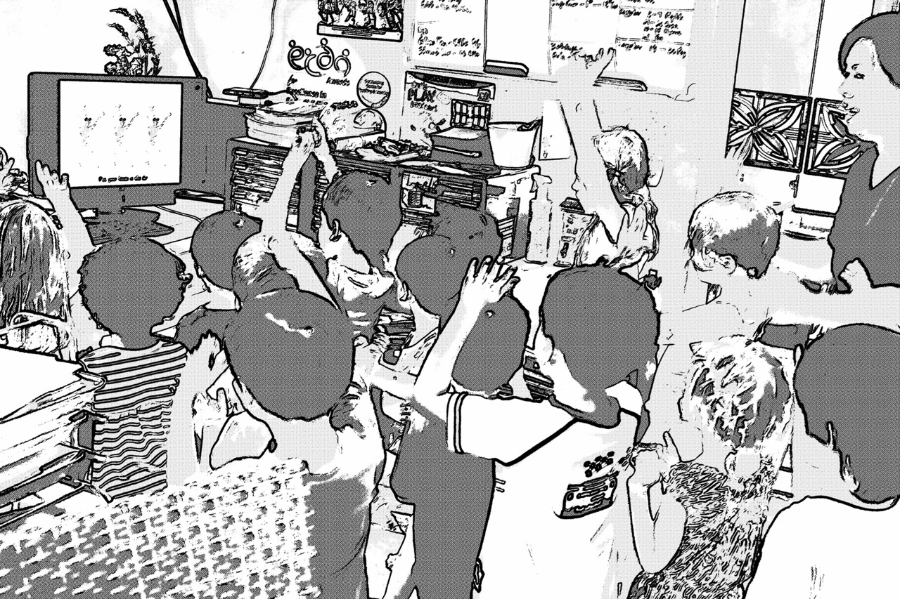 wiggle, wiggle…wiggle your knees. [Wiggle your whole body, moving your hands all the way down your body until they reach your knees.]
