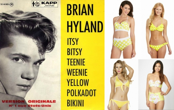 Interesting collage of Brian Hyland’s album cover and the evolution of the yellow bikini