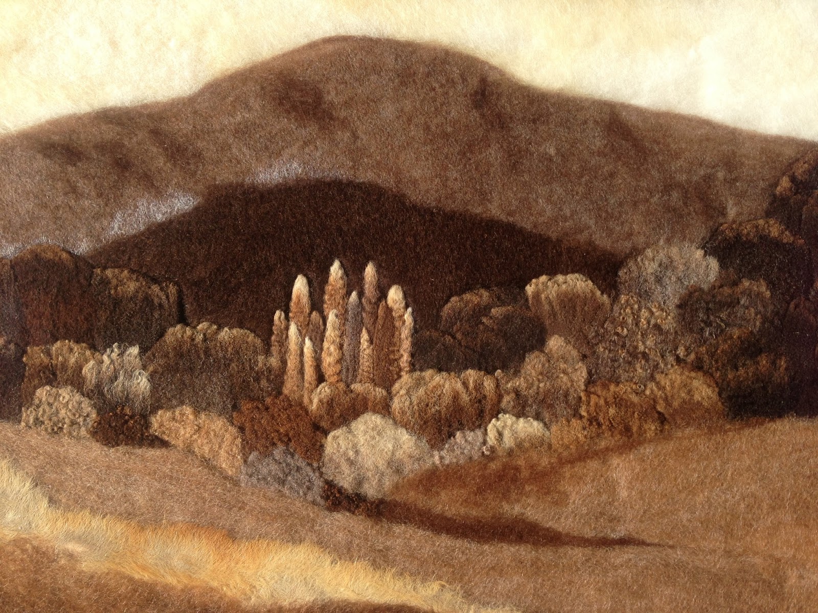 Description: artist creates landscape paintings using various shades of un-scoured wool